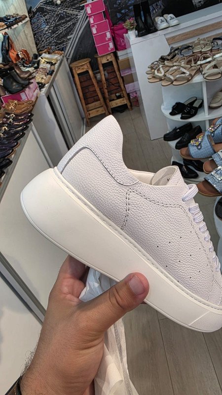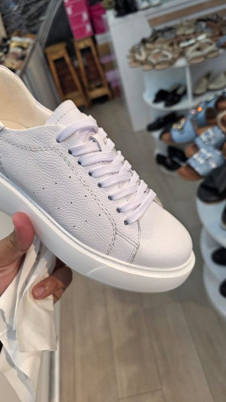 * Élégance minimaliste : ces sneakers blanches en cuir grainé sont conçues pour celles qui recherchent un style épuré et intemporel.